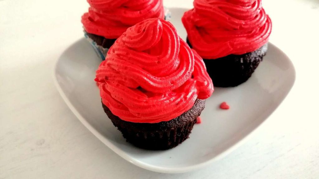 Oggi ho preparato i cupcakes estasi senza glutine con Bimby. Erano un po’ di giorni che mi frullavano in testa, avevo il colorante alimentare rosso in casa e volevo creare qualcosa di rosso/nero. Così stamattina mi son presa una pausa e li ho preparati. Ho avuto qualche problema con la sac a poche, per cui la panna non ha l’aspetto che dovrebbe avere, ma il risultato nel complesso è gradevole e il sapore ‘estasiante’.