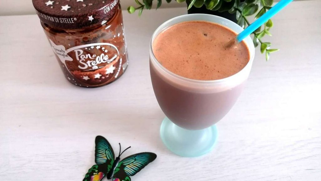 Ho preparato il frullato Pan di Stelle con Bimby perché qui fa un caldo incredibile e ho finito il gelato in freezer. Mio figlio aveva voglia di qualcosa di buono (che tradotto dignifica al cioccolato). Ero partita per un frullato alla nutella, ma poi ho visto che la crema pandistelle era quasi finita, e ho deciso di darle il colpo di grazia.