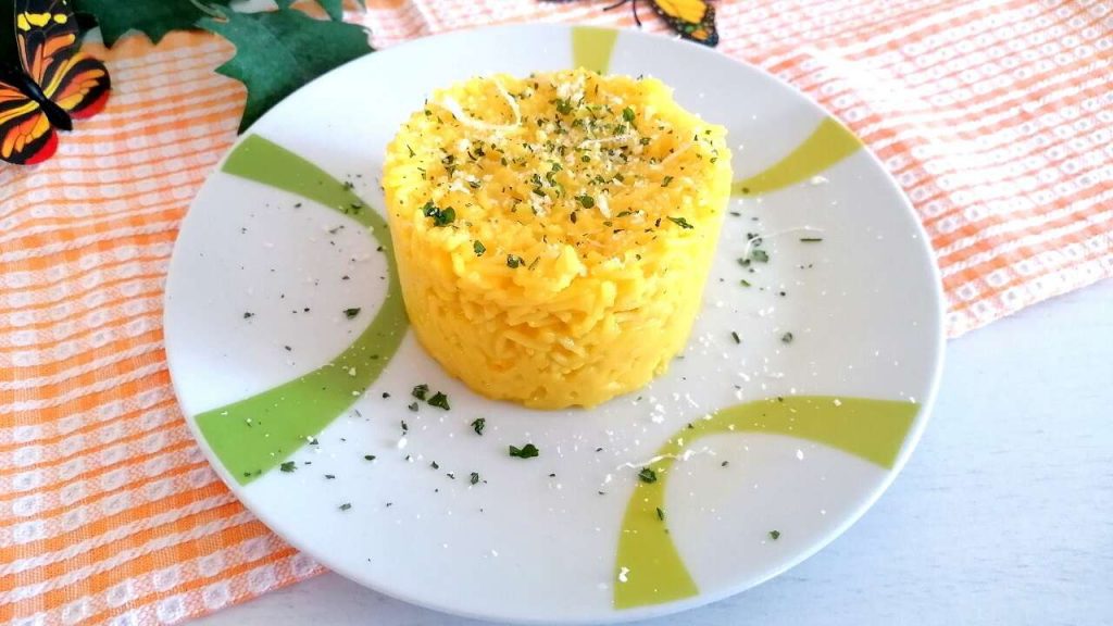 - Quando mancano due minuti dalla fine della cottura, unite lo zafferano sciolto in un po’ di acqua calda.