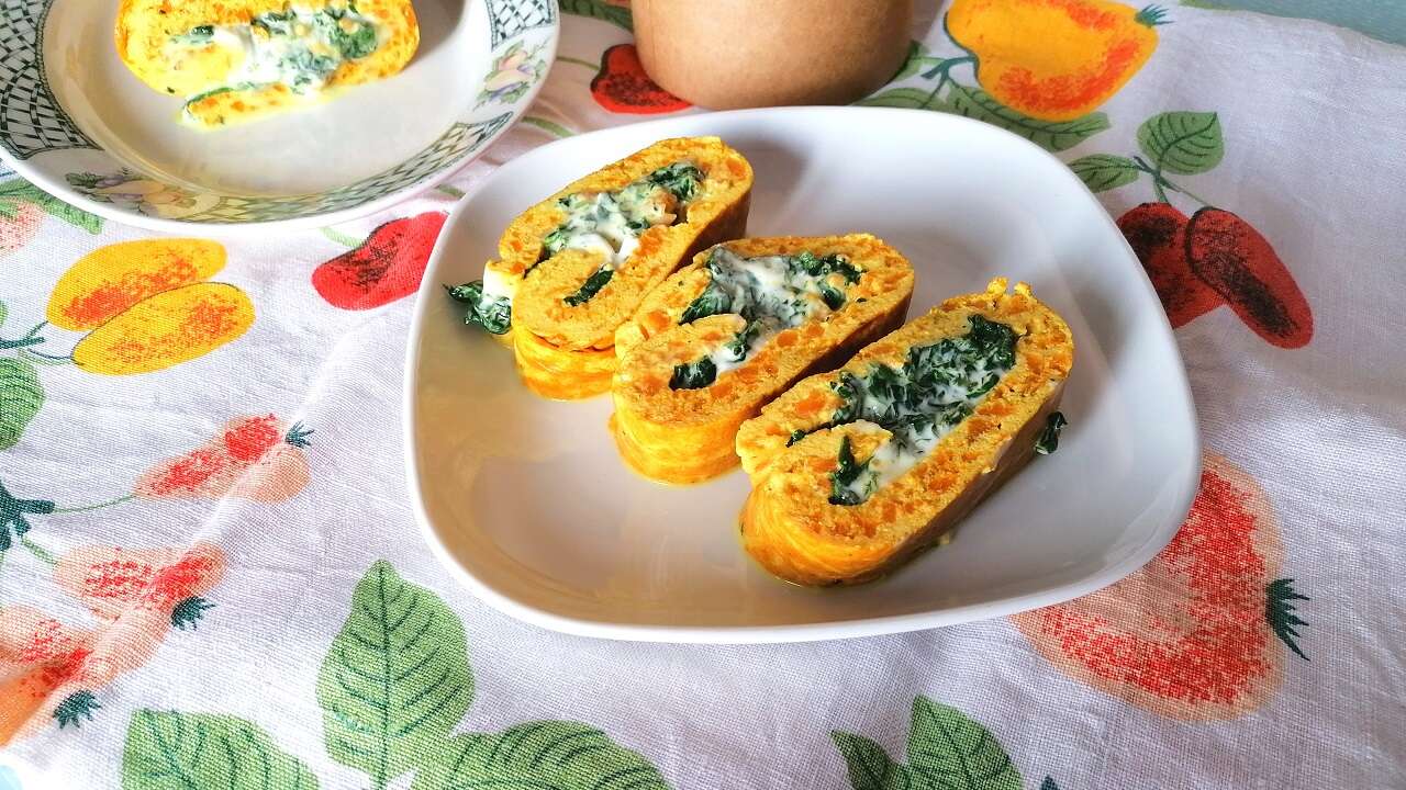 - Il vostro rotolo di frittata con zucca e spinaci è pronto.