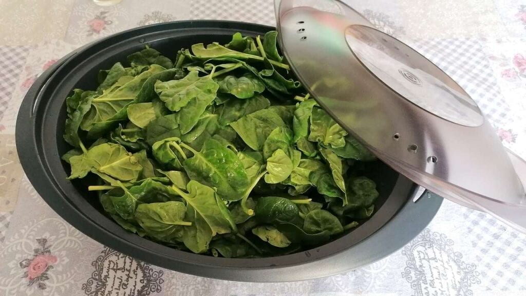 Non c’è nulla di più semplice che cuocere gli spinaci al Varoma con Bimby. Vi basterà avere la verdura in casa, fino a 400 gr, pulirla e lavarla per bene e poi inserirla nel Varoma con coperchio. Al resto ci pensa il vostro Bimby. Gli spinaci cotti in questo modo sono un’ottima base per altri piatti. Vi faccio alcuni esempi: