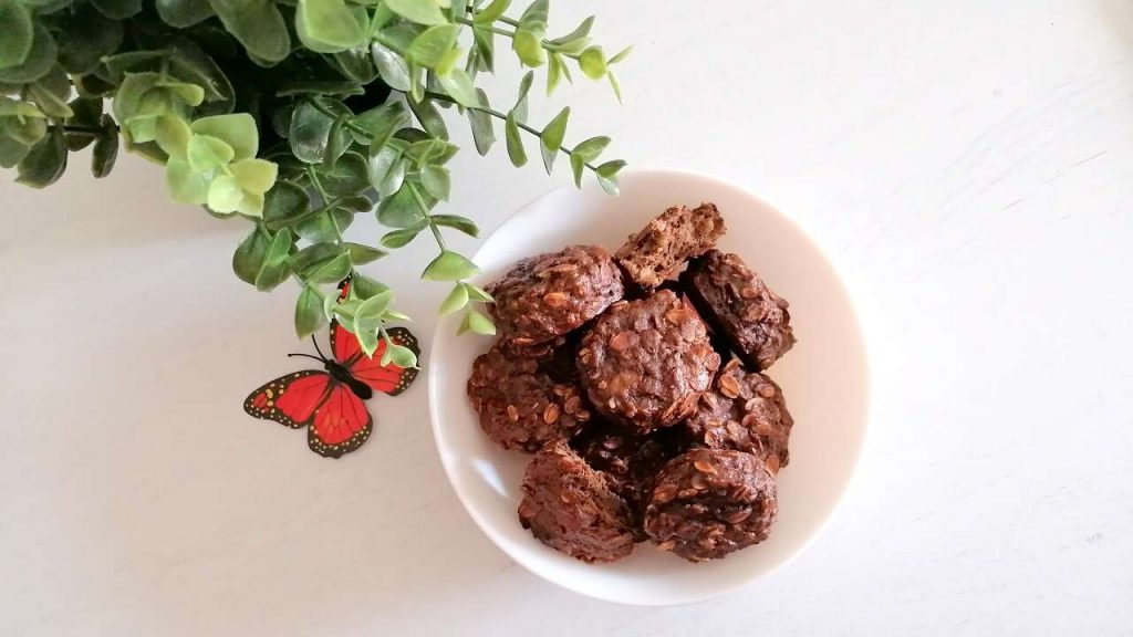 I biscotti morbidi e proteici al cacao sono senza uova e si preparano in un attimo: a base di avena e banana.