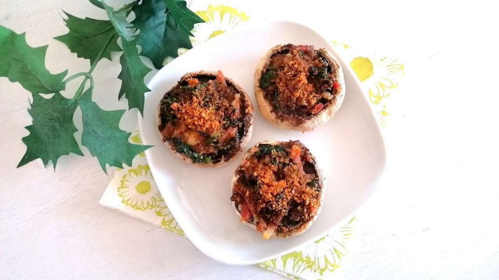 - I vostri funghi champignon ripieni di spinaci e speck sono pronti.