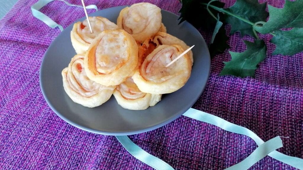 Girelle di pasta sfoglia con prosciutto e formaggio