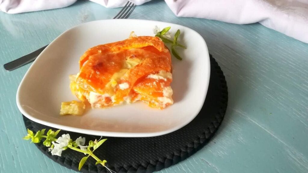 - La vostra parmigiana di zucca facile è pronta: consumatela calda o tiepida.