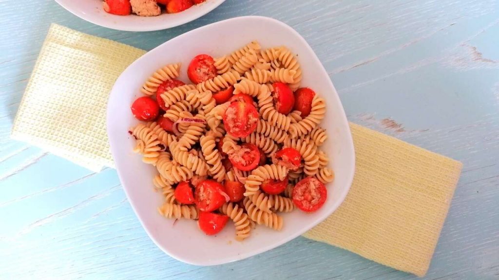 Quando volete preparare un primo piatto in anticipo, facile e veloce, la pasta fredda con tonno e pomodorini è perfetta. Al posto della classica insalata di pasta, vi basteranno pochissimi ingredienti per un piatto molto gustoso e da mangiare freddo. Inutile dice che va benissimo per il pranzo in spiaggia o un pic nic. Ma anche quando avete una giornata impegnativa, e volete trovare al vostro rientro il pranzo già pronto. La preparate in anticipo e la mettete in frigo.