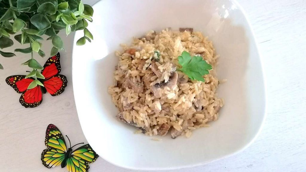 Il riso integrale con funghi è un piatto ‘difficile’, in quanto questa qualità di riso è notoriamente più dura e povera di amidi. Ciò lo rende adatto più ad insalate, che a risotti. Ma a parte il fatto che io amo il suo sapore, so anche che questa è la qualità di riso migliore. Quindi lo utilizzo anche in ricette non propriamente ideali, cercando di sfruttare al massimo la sua presenza nella mia cucina. Ecco com’è nata questa ricetta.