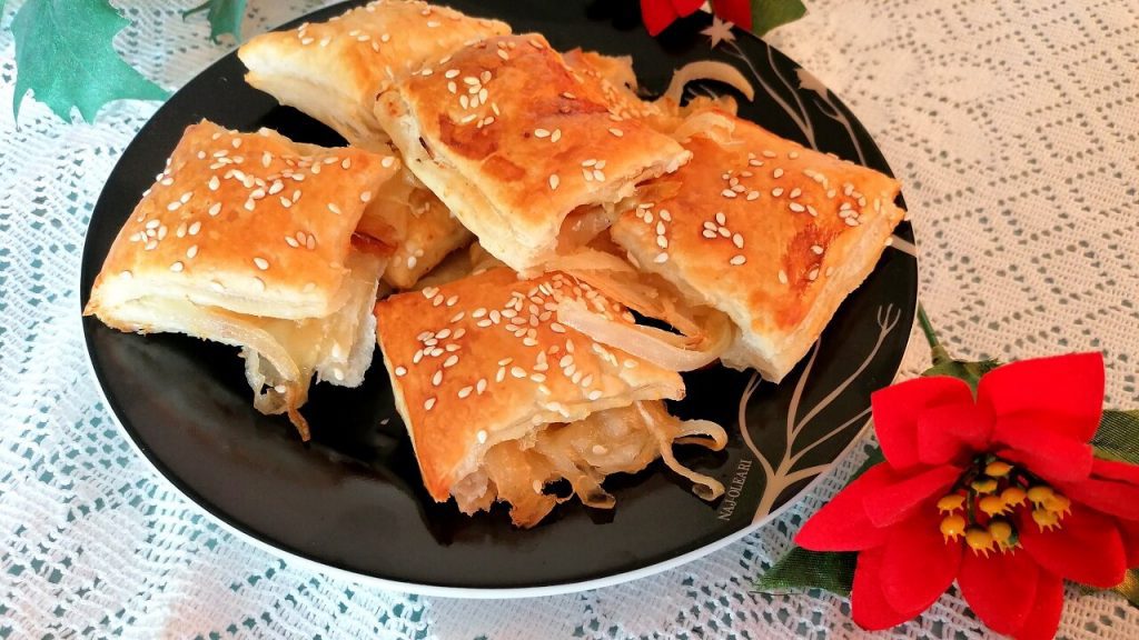 Stuzzichini di sfoglia alla cipolla, come aperitivo o antipasto