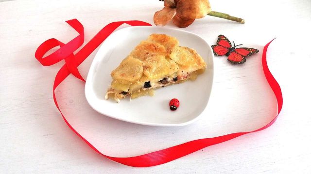 La torta di patate e funghi, con formaggio e prosciutto è una variante della classica torta di patate a fette. E’ perfetta quando vi sono rimasti, per esempio, dei funghi trifolati da consumare. In alternativa, potete prepararli apposta per questa ricetta, come ho fatto io. Di seguito alcuni consigli per personalizzare la ricetta a vostro gusto.