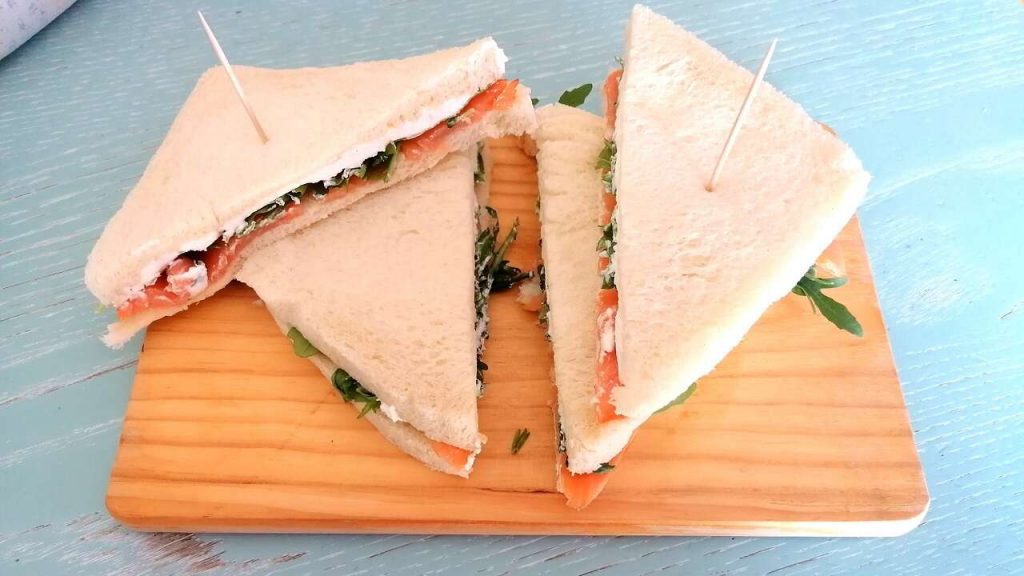 Come fare i tramezzini al salmone, philadelphia e rucola