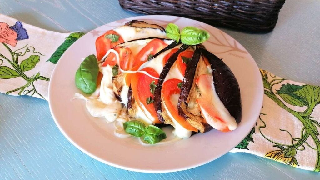 Il ventaglio di melanzane ripieno prevede che la melanzana venga tagliata a fette senza eliminare il picciolo. In questo modo si ottiene un’apertura a ventaglio, da riempire con formaggio, basilico e pomodoro. Volendo potete anche aggiungere olive o prosciutto cotto. Le melanzane a ventaglio possono servire da antipasto o contorno. Occorrente da cucina: