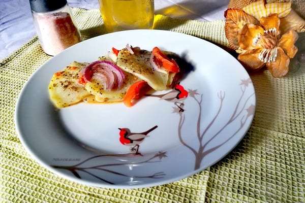 - Oliate il fondo della padella e create uno strato di zucchine, seguito da uno di pomodori e cipolla.
