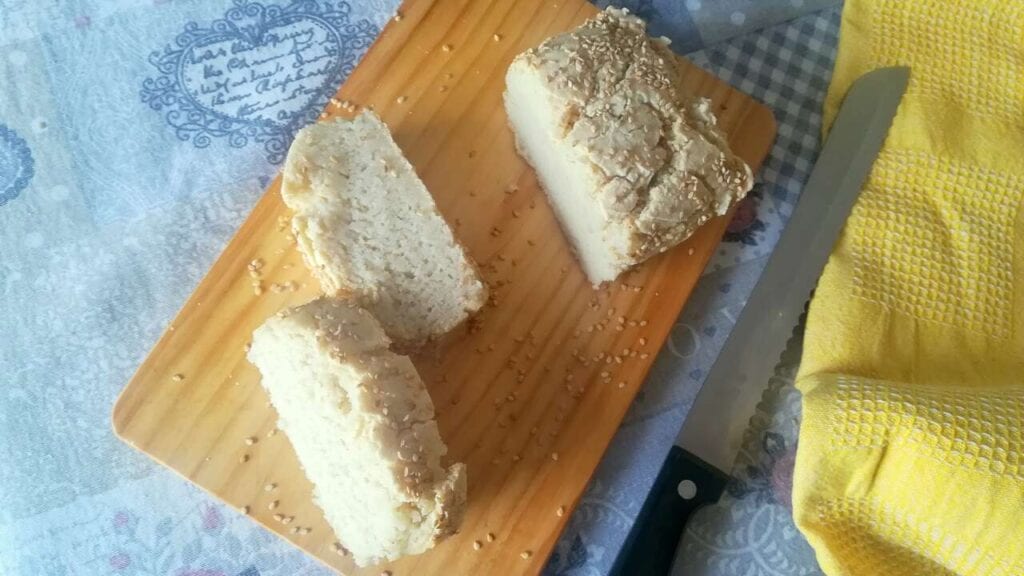 Prima di fare il pane di solo riso, ho fatto qualche ricerca online per capire come modificarne la resa. Così ho deciso di testare la gomma di Guar come addensante. Il test ha funzionato. Oltre ad ottenere un pane che non si sbriciola in modo eccessivo ha un altro vantaggio.